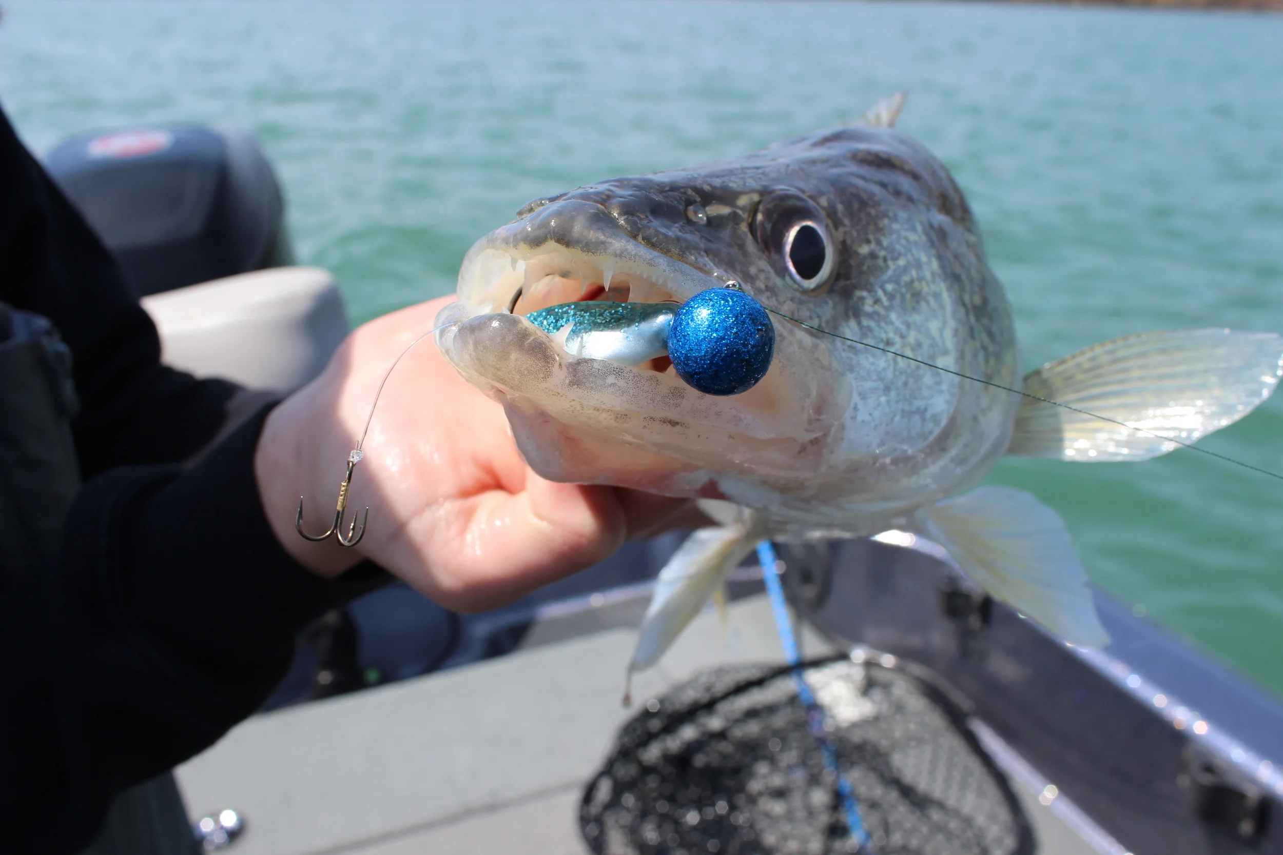 We decided to try the Detroit River one more time this year, and it paid off. We only got 6 bites, but they were all good ones. Ended up catching a 23.5", 27", 27", and a 29". We released the 29". The Garmin's were spot on with side imaging playing a significant role in locating rock/sand transitions. The GPS on my Garmin's was super helpful as we punched waypts for every fish we caught. Micah caught one casting a jig (the fish choked the bait). Charlie Brewer Sliders (pumpkin black flake), Lunker City Fin S minnows (Blue shad), Old Fart Lures Detroit River jig heads - blue was the hot color, citrus shad second (1 oz - amazing quality - could go the whole day with paint in tact, even after and entire day of banging rock). Just purchased Okuma's Helios Spinning Rods for the River - MH 7' were perfect for jigging 1 oz weight. Lastly, never skimp on your connection between your rod/reel and your lure - your line has a huge impact on whether you catch and land fish. Gamma makes the best - we used both their Torque (10lb/3lb) which is their line of braid and their fluoro called Edge (prefer 8lb). Learned a lot on the water today!